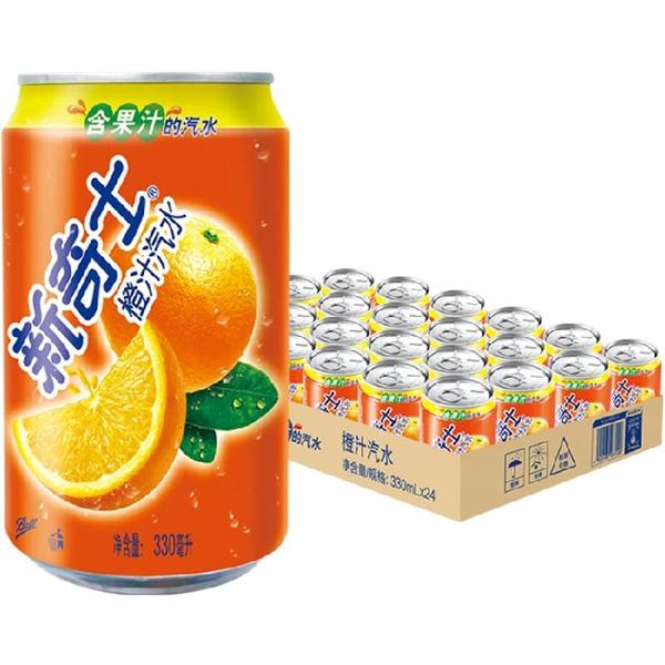 屈臣氏新奇士橙汁汽水整箱装果汁碳酸饮料补充维C畅饮