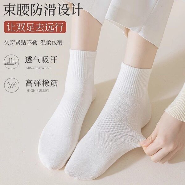 芬腾袜子女春秋款中筒袜防臭黑白色运动中筒棉袜多巴胺色系短袜