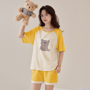 可爱睡衣女清新短袖短裤薄款女士纯棉